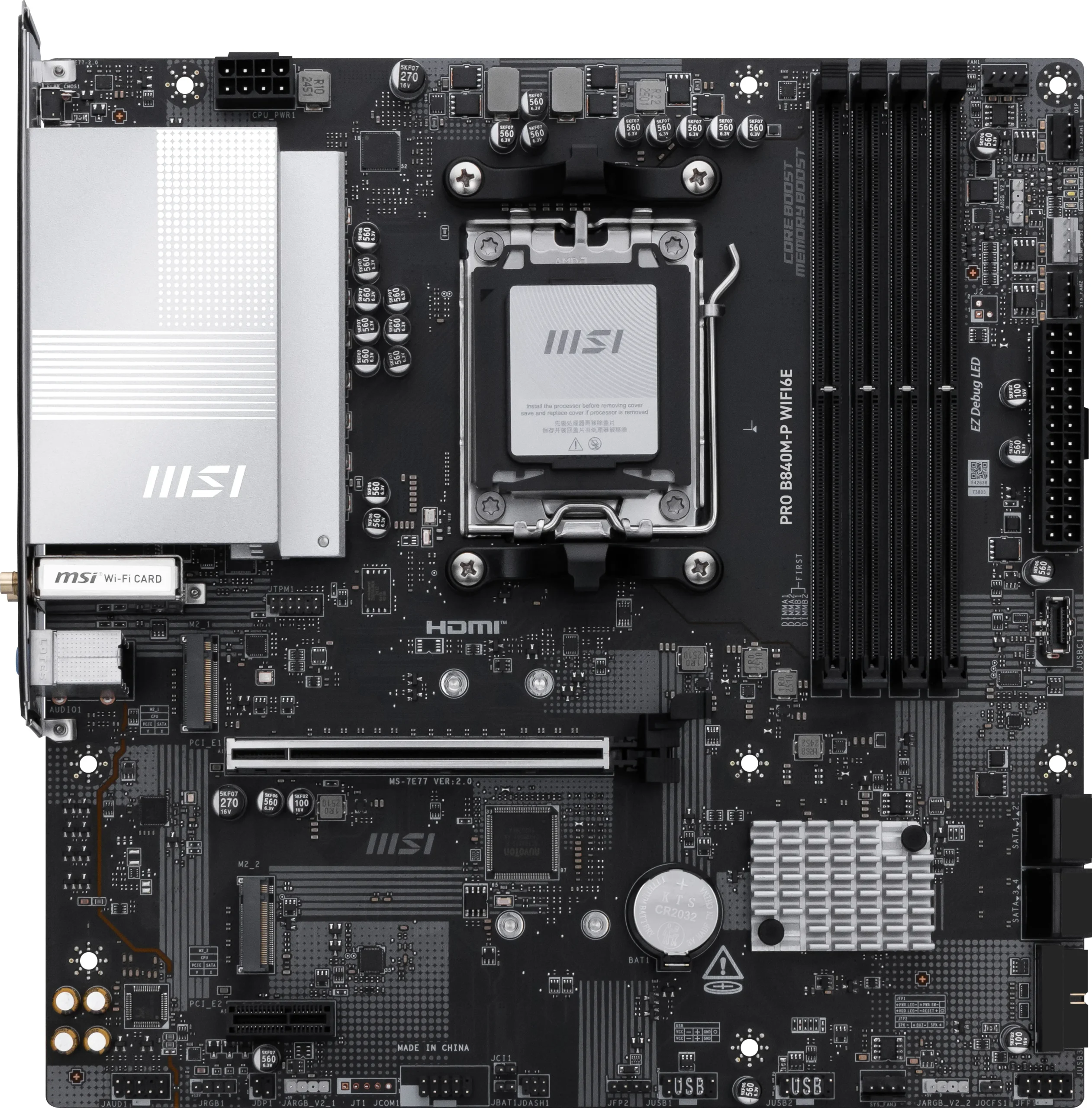 MSI PRO B840M-P WIFI6E on luotettava ja monipuolinen mATX-emolevy, joka on suunniteltu päivittäiseen tietojenkäsittelyyn, kevyeen pelaamiseen ja sujuvaan tuottavuuteen. Se tukee AMD Ryzen™ 9000/8000/7000 -sarjan työpöytäprosessoreita Socket AM5 -kannalla tarjoten vankan alustan erilaisille tehtäville, kuten kotitoimistotyölle ja multimediapohjaiseen viihteelle. Sen pienikokoinen muotoilu tekee siitä erinomaisen valinnan tilaa säästäviin kokoonpanoihin tinkimättä olennaisista ominaisuuksista. Tämä emolevy on suunniteltu MSI:n yksinoikeudellisilla ominaisuuksilla, ja se sisältää Wi-Fi 6E:n EZ-antennilla nopeampia langattomia nopeuksia varten, 2.5G LAN -portin nopeaan verkkoon ja PCIe 4.0 M.2 -paikan nopeita tallennusratkaisuja varten. Direct 7+2+1 -virransyöttörakenne takaa vakaan virransyötön, kun taas laajennettu jäähdytyselementti tarjoaa tehokkaan jäähdytyksen. MSI Centerin ja BIOS:in tekoälypohjaisten ominaisuuksien sisällyttäminen virtaviivaistaa järjestelmän optimointia, mikä tekee huippusuorituskyvyn saavuttamisesta helpompaa kuin koskaan. Tärkeimmät ominaisuudet Tukee AMD Ryzen™ 9000/8000/7000 -sarjan työpöytäprosessoreita Socket AM5 4x DDR5 UDIMM -paikkaa, enintään 256 GB:n muistikapasiteetti Tukee DDR5-muistia jopa 8000+ MT/s (OC) 1x PCI-E x16 -paikka, joka tukee PCIe 4.0:aa 2x M.2 -paikkaa, jotka tukevat PCIe 4.0 x4:ää 4x SATA 6G -porttia Realtek® ALC897 7.1-kanavainen teräväpiirtoäänikoodekki Realtek® 8125D 2.5G LAN Wi-Fi 6E EZ-antennilla Useita USB-portteja, mukaan lukien USB 3.2 Gen 2×2 Type-C EZ M.2 Clip II työkaluttomaan M.2 SSD -asennukseen Mitä pakkauksessa on MSI PRO B840M-P WIFI6E -emolevy I/O-suoja SATA-kaapelit Wi-Fi-antenni Käyttöohje Ohjain-DVD EZ M.2 Clip II -irrotustyökalu