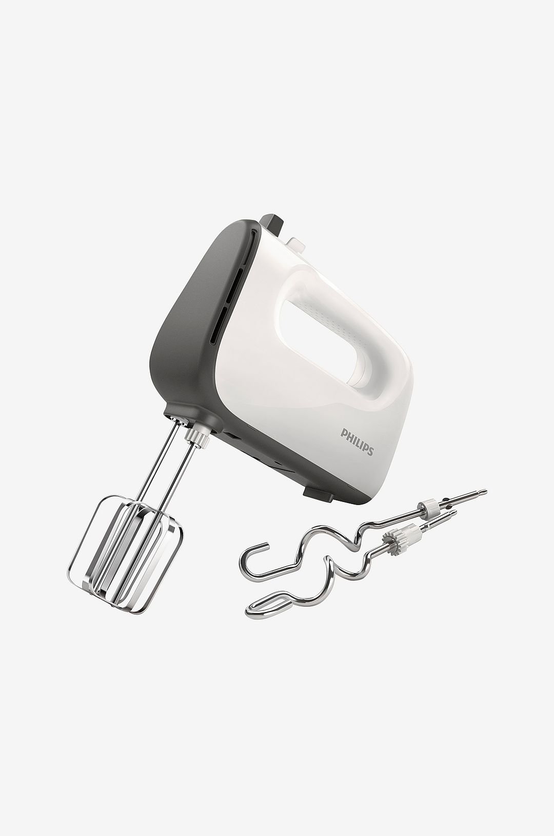 Vatkaa kakkutaikinat tasaisiksi tehokkaalla vatkaimella Philips-vatkaimella leivot helposti herkullisia ja kuohkeita kakkuja ja leipiä koko perheelle. Kartiomuoto lyhentää vatkausaikaa ja tekee taikinasta pehmeämpää. Tehokas 450 watin moottori vaivaa paksuimmankin taikinan kevyesti. Vatkaa kakkutaikinat tasaisiksi tehokkaalla vatkaimella Jopa 25 % nopeampi* tehokkaan 450 watin moottorin ansiosta 450 W 5 nopeutta + turbotoiminto Kashmirinharmaa Kartionmallinen vispilä sitoo runsaasti ilmaa Ainutlaatuinen kartionmallinen vispilä sitoo taikinaan runsaasti ilmaa, joten kakkutaikinasta tulee kuohkeaa ja tasaista. 450 watin moottori vaivaa paksuimmankin taikinan Tehokas 450 watin moottori vaivaa paksuimmankin taikinan kevyesti. Viisi nopeusasetusta helpottavat hallintaa Useiden nopeusasetusten ansiosta voit säädellä vatkaustehoa tarkkaan. Turbotoiminto Turbotoiminnolla saat lisätehoa juuri silloin kuin sitä tarvitset. Helposti asennettavat vispilät Vispilöiden päät ovat erilaiset, joten niiden asennus sujuu kätevästi ja nopeasti. Helppokäyttöinen vispilöiden irrotuspainike Vispilät ja taikinakoukut voi irrottaa yhdellä painikkeella. Mukana: Kaksoisvispilä