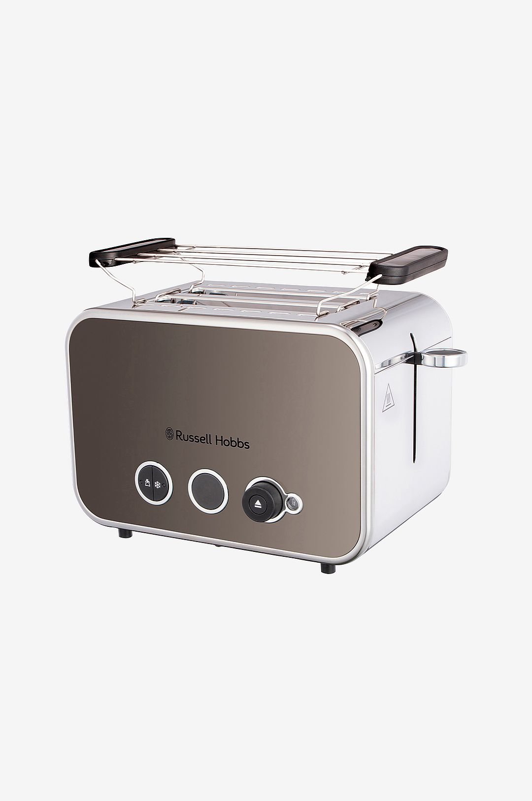 Leivänpaahdin kahdelle leipäviipaleelle. 6-asteinen lämpötilansäätö – paahtaa leivän juuri haluamallasi tavalla. Nosta ja katso -toiminto – nosta leipä ja tarkista paahto-aste paahtamista keskeyttämättä. Sulatusritilä pitää leivän lämpimänä ja LED-merkkivalo näyttää jäljellä olevan paahto-ajan. Tuotteen toiminnot: – Pitkät aukot. – Murutarjotin. – Sininen merkkivalo. – Sulatusritilä.
