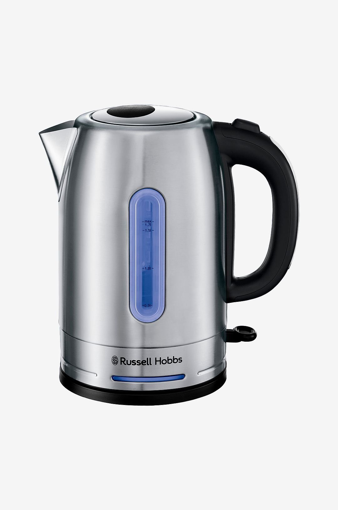 Nyt voit nauttia kupillisen teetä kaikessa rauhassa hiljaisen vedenkeittimen ansiosta Vedenkeitin kiehauttaa veden teetä, kahvia tai ruoanlaittoa varten erittäin hiljaisesti. Kaksi vesimäärän osoittavaa ikkunaa ja sisäänrakennettu sininen valo, jotta näet helposti paljonko vettä kannussa on ja saat kauniin hohteen keittiöösi. Hienostunut muotoilu, harjattu ruostumaton teräs ja kiillotetut yksityiskohdat antavat vedenkeittimelle ylellisen ilmeen. Kaada vesi kuppiin siististi erityisen kaatonokan avulla. 1,7 litran tilavuus on riittävä suurellekin seurueelle, ja jos haluat kiehauttaa pienemmän määrän, löydät pohjasta merkinnän yhtä, kahta tai kolmea kupillista varten. Näin kiehautat vain tarvitsemasi määrän vettä. Lisää vettä 1 kupin merkintään asti (236 ml). Vedenkeitin kiehauttaa yhden kupillisen vettä alle 56 sekunnissa ja säästää jopa 65% energiaa verrattuna siihen, että se kiehauttaisi litran vettä. Tuotetiedot: – Hiljainen kiehautus – Kaksi vesimäärän osoittavaa ikkunaa ja sininen sisävalo – Harjattua ruostumatonta terästä, kiillotetut yksityiskohdat – Yhdellä painalluksella avautuva kansi – Kaatonokka – Pikakiehautus – Vetoisuus 1,7 litraa – Säästää jopa 65% energiaa** – Alustassa paikka johdolle – 2400 wattia