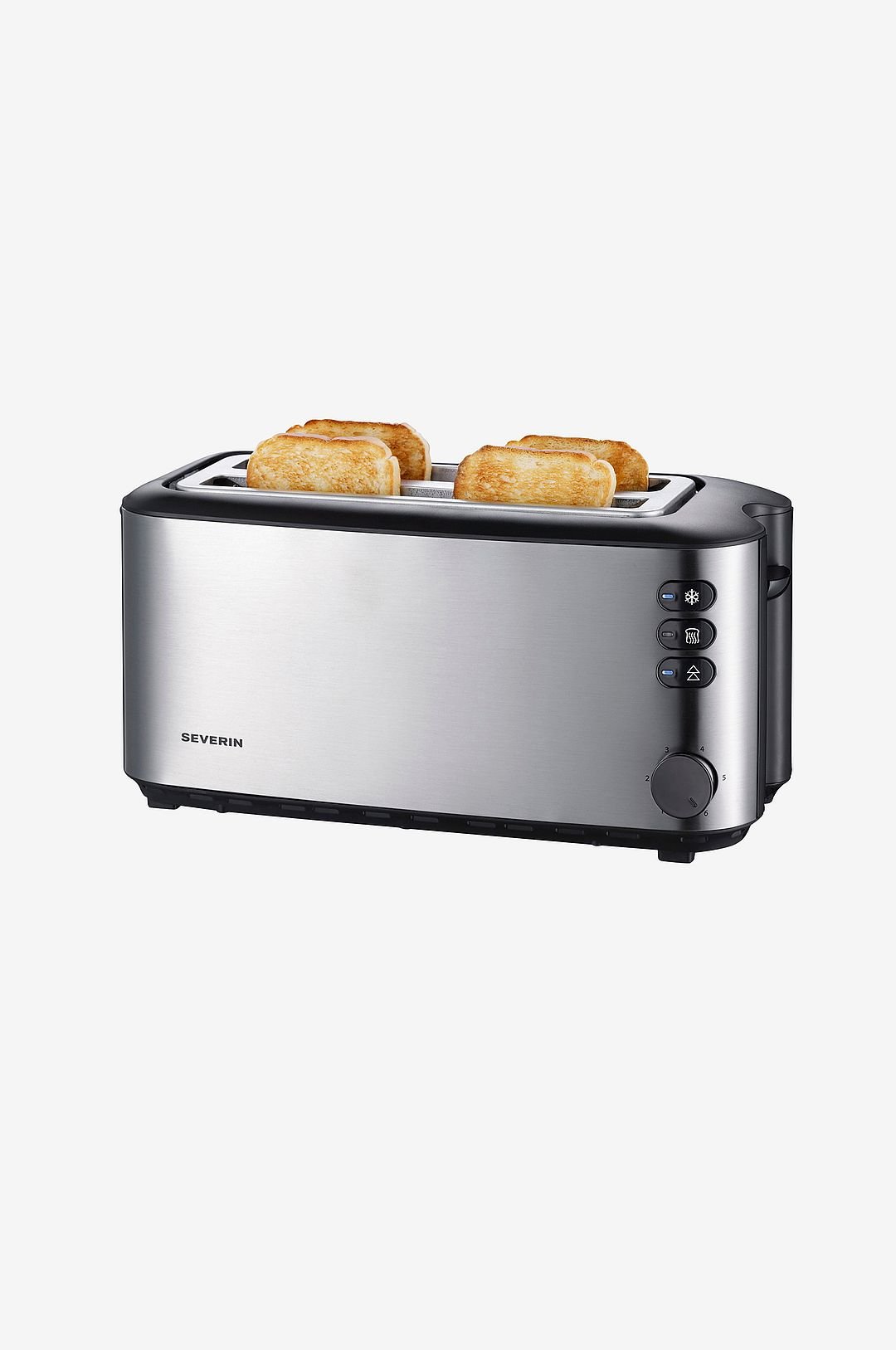 Leivänpaahdin neljälle leipäviipaleelle. Ruostumatonta terästä. Ainutlaatuinen kaksinkertainen kuori kuumumattomat kyljet. Elektroninen paahtoasteen säätö, jossa lämpötila-anturi aina täydellinen paahtoaste. Leivänpaahdin on hyvä vaikkapa perheelle voit paahtaa neljä viipaletta kerrallaan. Sämpylänlämmitin, pysäytyspainike ja murualusta. Teho 1400 W. Kapasiteetti 1 4 viipaletta. – Ruostumatonta terästä – Tilavat lokerot, tilaa 4 leipäviipaleelle – Automaattinen viipaleiden keskitys – High rise -toiminto helpottaa leipien ottamista pois paahtimesta – Pysäytyspainike – Sulatustoiminto – Lämmitystoiminto – Automaattinen virrankatkaisu, jos viipale juuttuu – Murualusta – Paikka johdolle